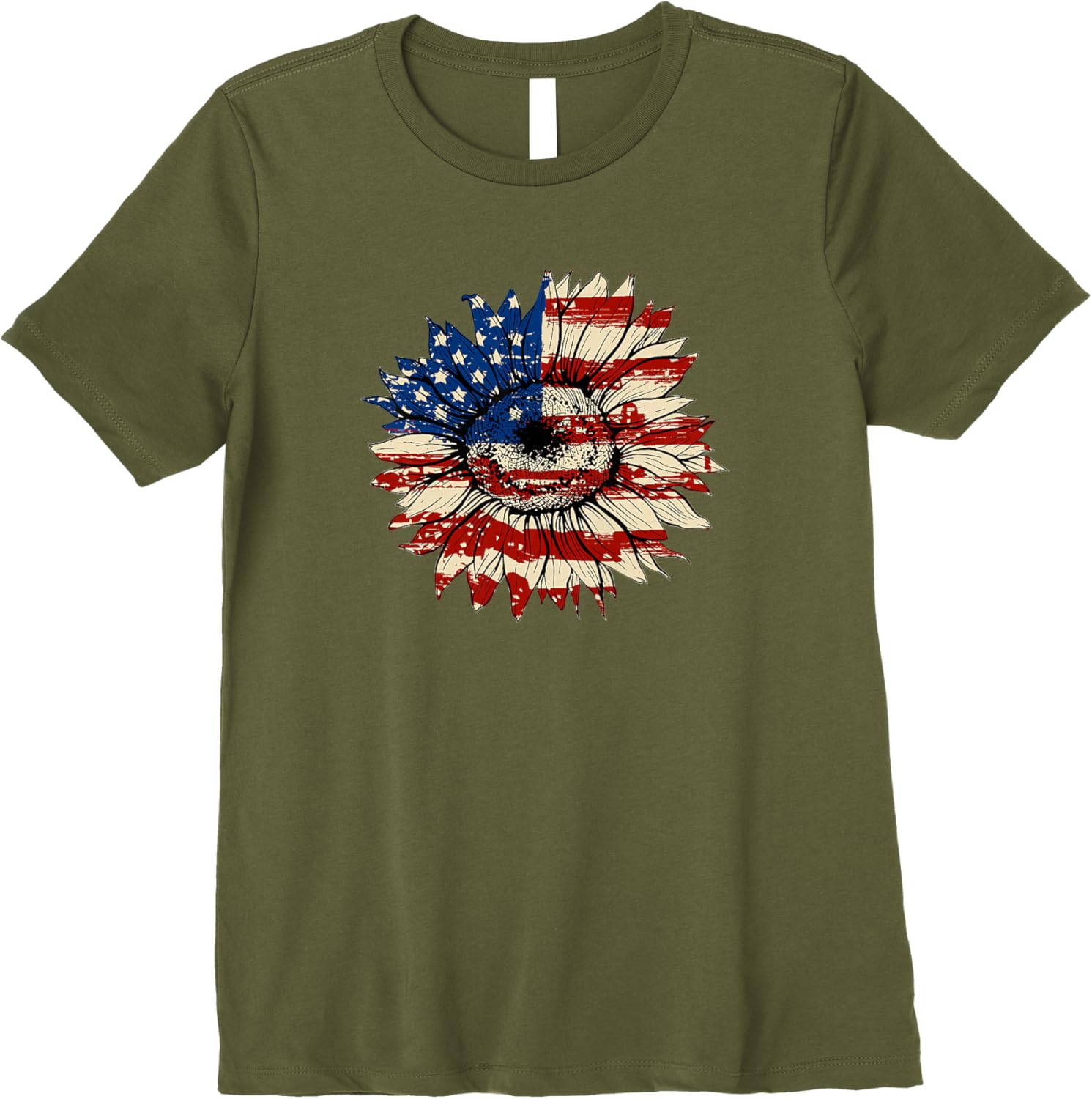 4th of July Sunflower T-Shirt Flag USA American Patriotic Premium T-Shirt