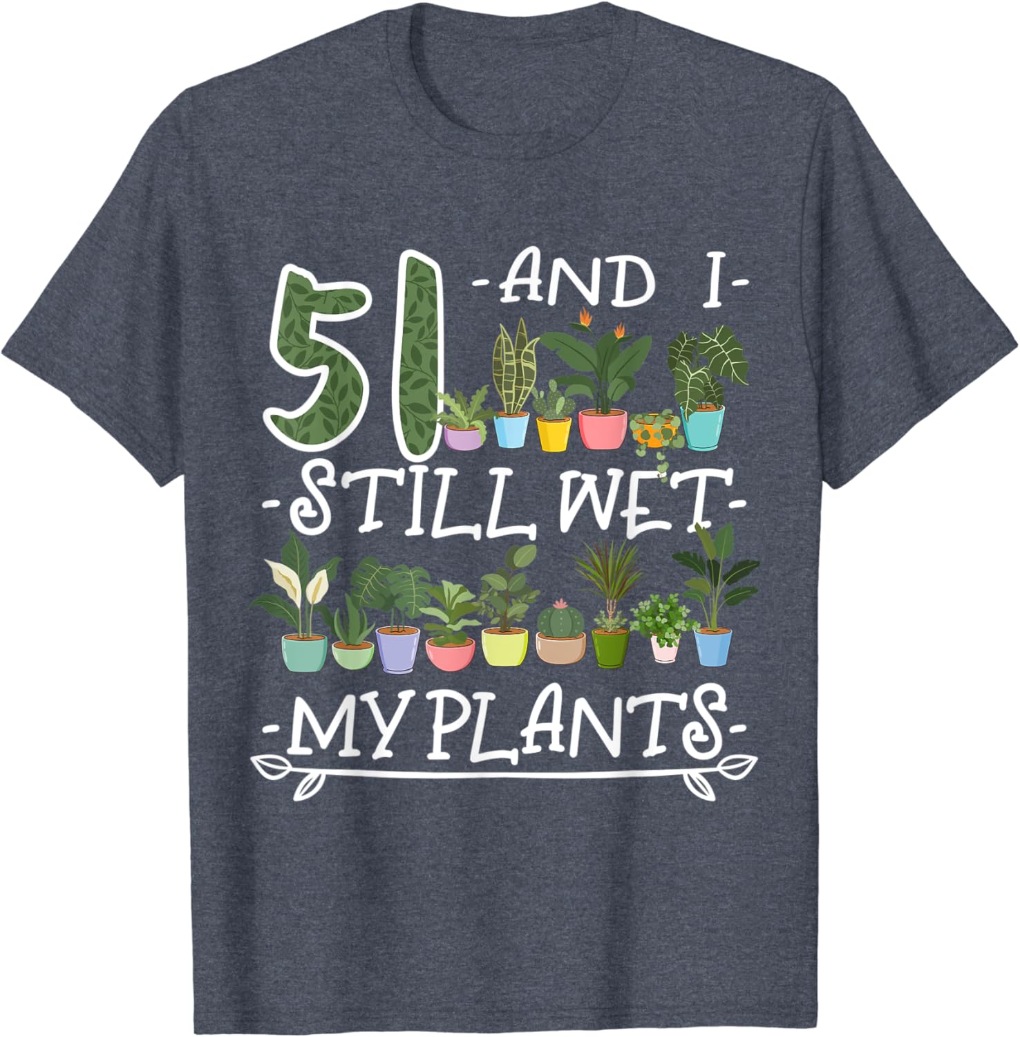 51st Birthday I Succulent I Pot Plant Head I Wet My Plants T-Shirt