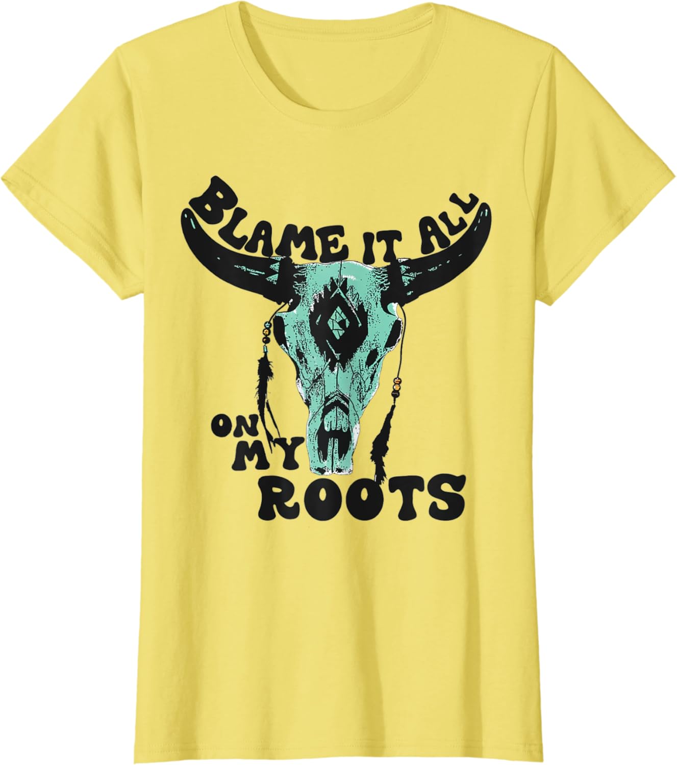 Western Blame It All On My Roots Turquoise Cow Bull Skull T-Shirt