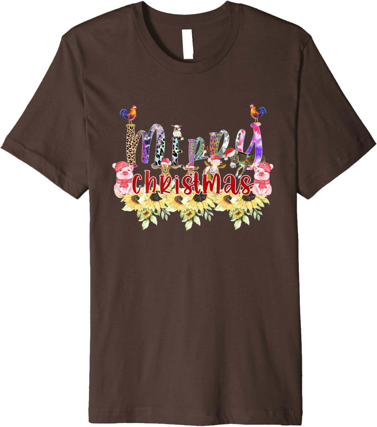Western Country Farm Animals Cow Merry Christmas Cows Pigs Premium T-Shirt