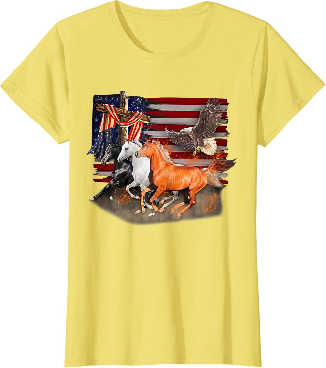 Wings Eagle Horse American Flag Vintage July 4th Patriotic T-Shirt