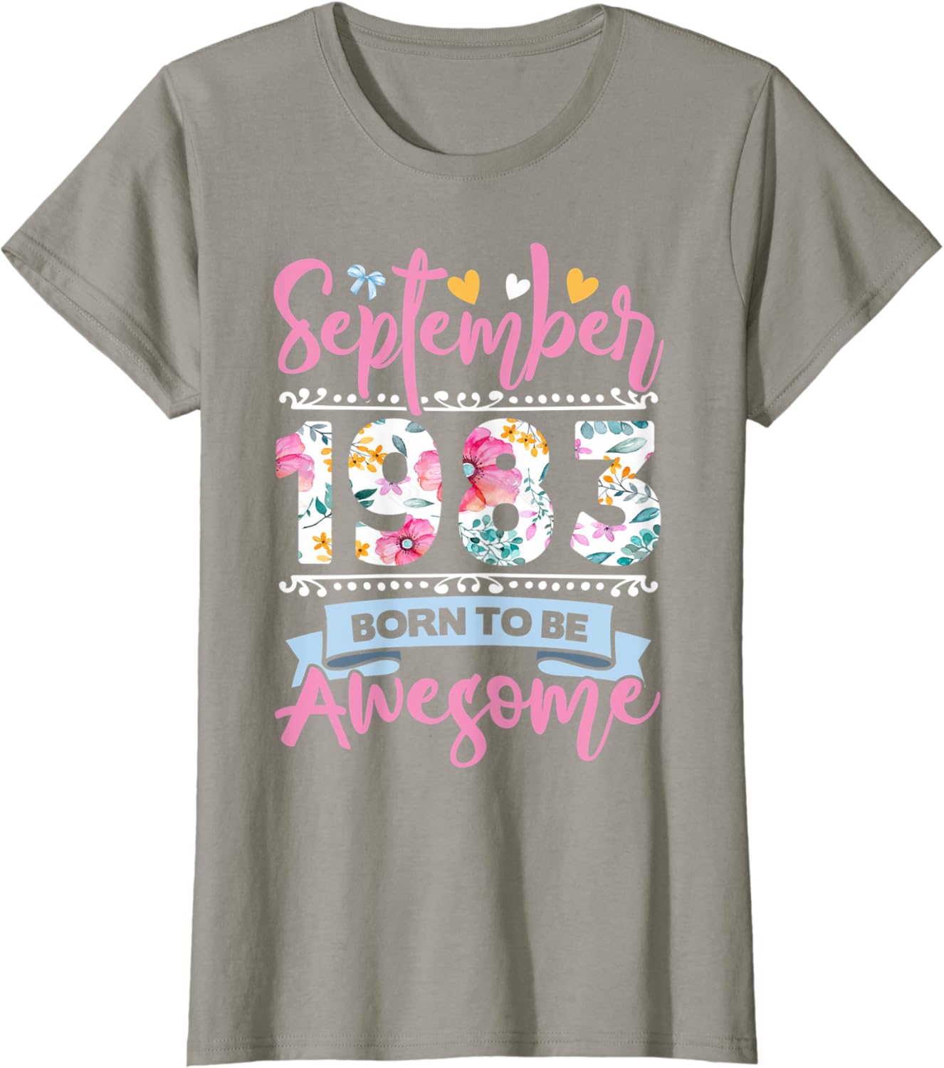 Womens 39 Birthday Born to Be Awesome September 1983 Floral T-Shirt