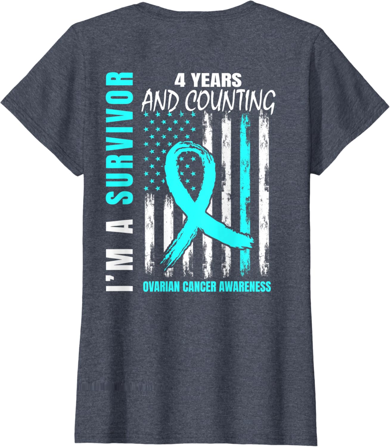 Womens 4 Year Ovarian Cancer Survivor Gifts American Flag Graphic T-Shirt