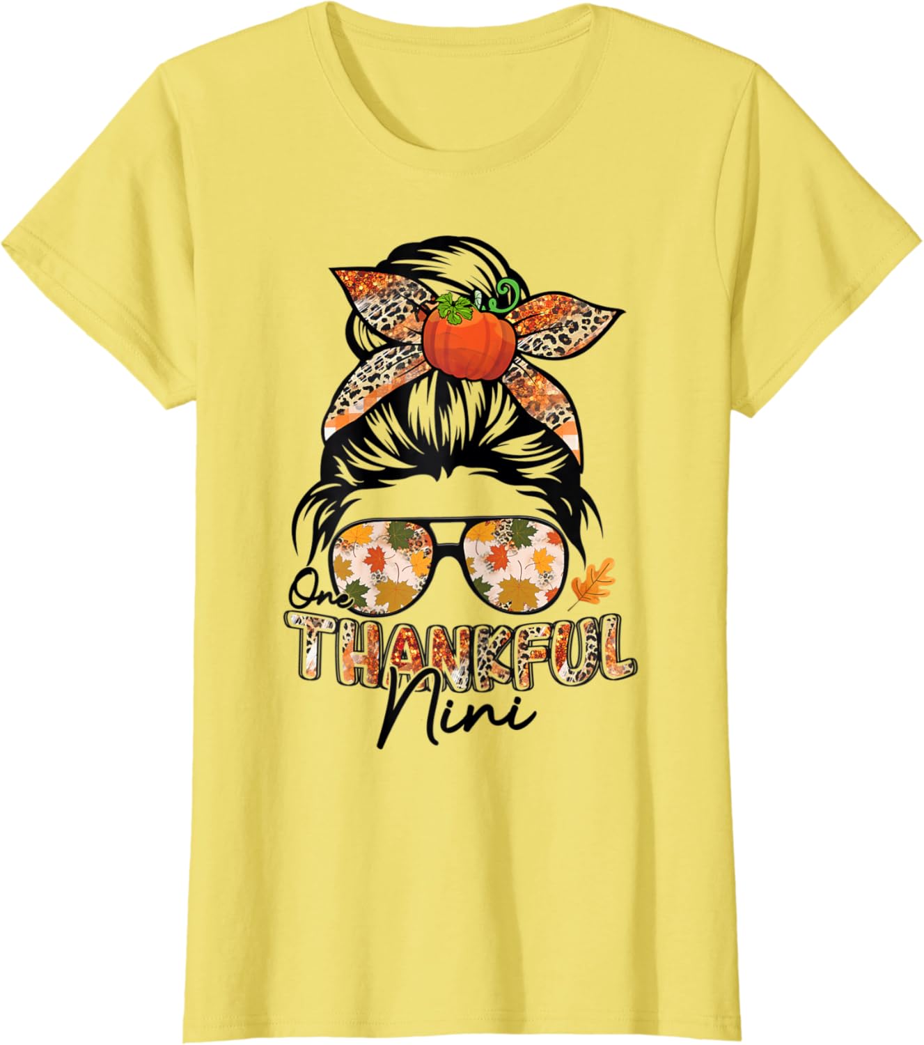 Womens G0NB Messy Bun One Thankful Nini Thankful Family Matching T-Shirt