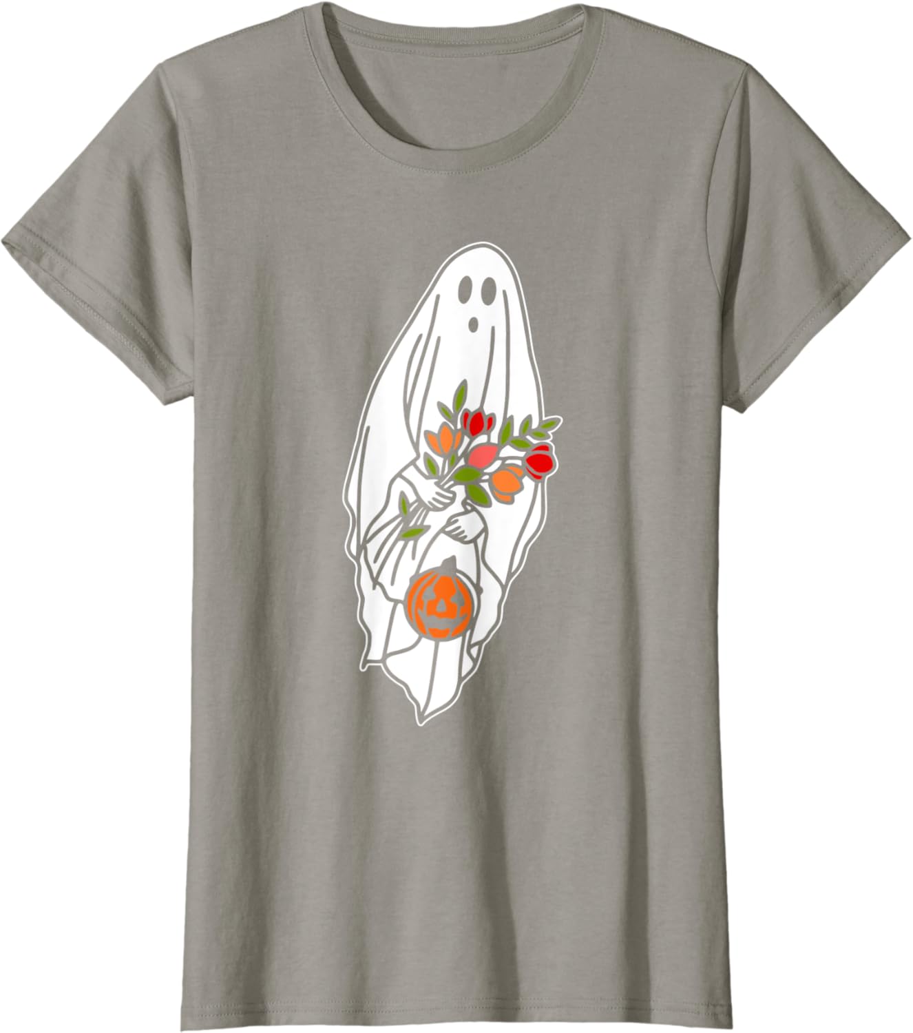 Womens Ghost Cute Halloween Graphic Floral Ghost T-Shirt